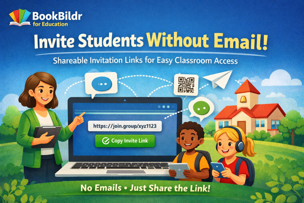 We’re pleased to announce a new feature for BookBildr for Education that makes classroom setup even easier. Teachers can now invite students to join their group using a shareable invitation link—no email required. This update is especially helpful for schools that block incoming emails from external addresses, making traditional email invitations unreliable or impossible. With […]